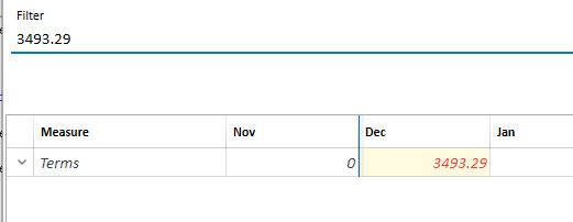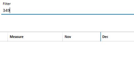 - numeric columns filter as per screenshots. note the actual value is 3493.29 which is only found for its integer value, at which point the grid removes its decimal value, or its entire value, not any substring of that value