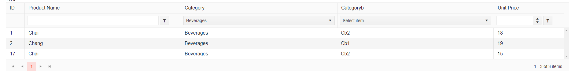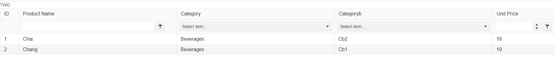 I search an demo like this with two Dropdown, where i could filter on theses columns regards