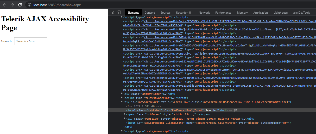 My pages fail Accessibility for using the SearchBox control with the following error;
