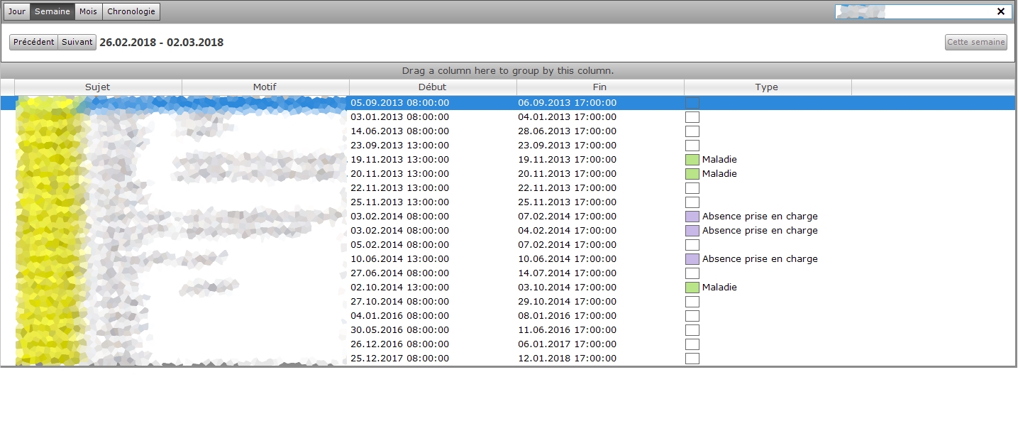 On the grid displaying the result of a search, there is a column based on the background of the appointements which display a color and a displayname defined by Backgrounds property of the Scheduler and the value set in an appointement.
