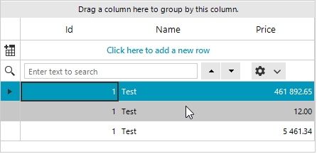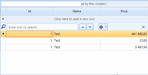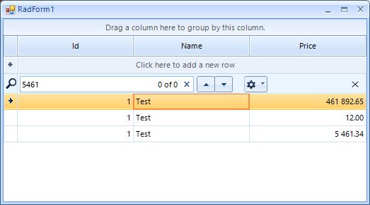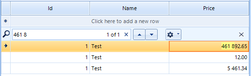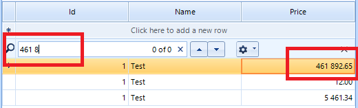 decimalColumn.FormatInfo = culture;Thus, the search functionality will highlight the formatted cell values that match the criteria:
