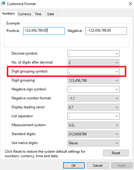 These are the regional settings on my computer: