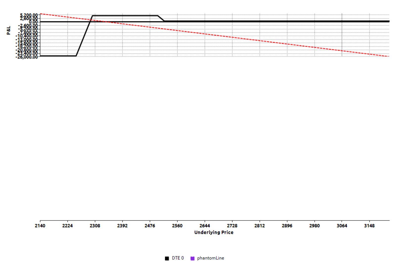 // Horizontal AxisLinearAxis horAx = new LinearAxis();horAx.Minimum = _minX; // minStrikehorAx.Maximum = _maxX; //maxStrikehorAx.MajorStep = Math.Round((ulPrice * 0.03), 0); horAx.Title = "Underlying Price";horAx.Font = new System.Drawing.Font("Ubuntu", 10F, FontStyle.Bold);// Secondary x-axis with percent values of current priceLinearAxis horAx2 = new LinearAxis();horAx2.VerticalLocation = AxisVerticalLocation.Bottom;horAx2.Minimum = Math.Round(_minX / ulPrice, 4);horAx2.Maximum = Math.Round(_maxX / ulPrice, 4);horAx2.Title = "Strike Moneyness";horAx2.MajorStep = Math.Round(ulPrice * 0.03 / ulPrice, 4); horAx2.Font = new System.Drawing.Font("Ubuntu", 10F, System.Drawing.FontStyle.Bold);foreach (Line l in _drawnLines){ ScatterLineSeries sls = l.sls; sls.PointSize = new SizeF(1, 1); sls.BorderColor = l.color; sls.ForeColor = l.color; sls.BackColor = l.color; sls.BorderWidth = 3; if (l.name == "DTE 0") { sls.BorderDashStyle = System.Drawing.Drawing2D.DashStyle.Solid; } else { sls.BorderDashStyle = System.Drawing.Drawing2D.DashStyle.Dash; } sls.LegendTitle = l.name; if (sls.Name == "phantomLine2") { sls.HorizontalAxis = horAx2; } else { sls.HorizontalAxis = horAx; } rcv.Series.Add(sls);}// Vertical AxisLinearAxis verAx = rcv.Axes.Get<LinearAxis>(1); //.Axes.Get<LinearAxis>(1);verAx.Minimum = _minY; // - 1000;verAx.Maximum = _maxY; // + 1000;verAx.Title = "P&L";verAx.MajorStep = Math.Round(Math.Max(Math.Abs(_minY), Math.Abs(_maxY)) * 0.1, 0);verAx.LabelFormat = "{0:N}";verAx.Font = new System.Drawing.Font("Ubuntu", 10F, FontStyle.Bold);