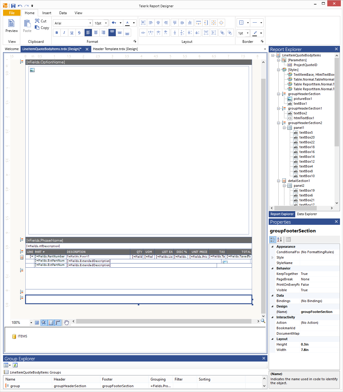 Also, anyone coming from Crystal Reports, should also look at the Bindings property of sections and items. Because there, you can set page breaks and the other things that you are not able to set in the standard conditional formatting. It's a very cool way of doing things.