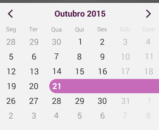 calendarView.setCustomizationRule(new Procedure<CalendarCell>() { @Override public void apply(CalendarCell calendarCell) { if (calendarCell instanceof CalendarDayCell) { calendar.setTimeInMillis(calendarCell.getDate()); calendarCell.setEnabled( !(calendar.get(Calendar.DAY_OF_WEEK) == Calendar.SATURDAY || calendar.get(Calendar.DAY_OF_WEEK) == Calendar.SUNDAY)); } }});I hope now you will be able to achieve your scenario.