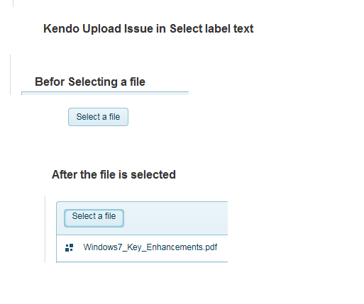 I would like to ask for your help with regards to text label of "Select" button is mis-aligned after I selected the file in Kendo Upload.