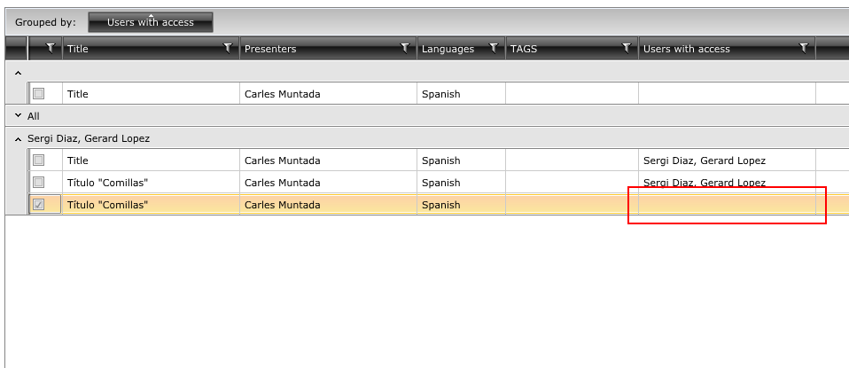 Note the "Name" line. This way I have 5 items per group when grouping by Name. Every time I use the checkbox on the Group header everything works well, the problem comes when I individually select or unselect an item, the group's checkbox isn't refreshed. The result is the attached image.