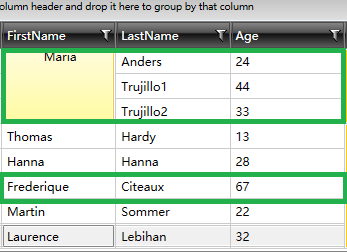 In 1.png, I hope to show the green boder of the three rows when I select Maria.And Show the green border of single row when I select Frederque.