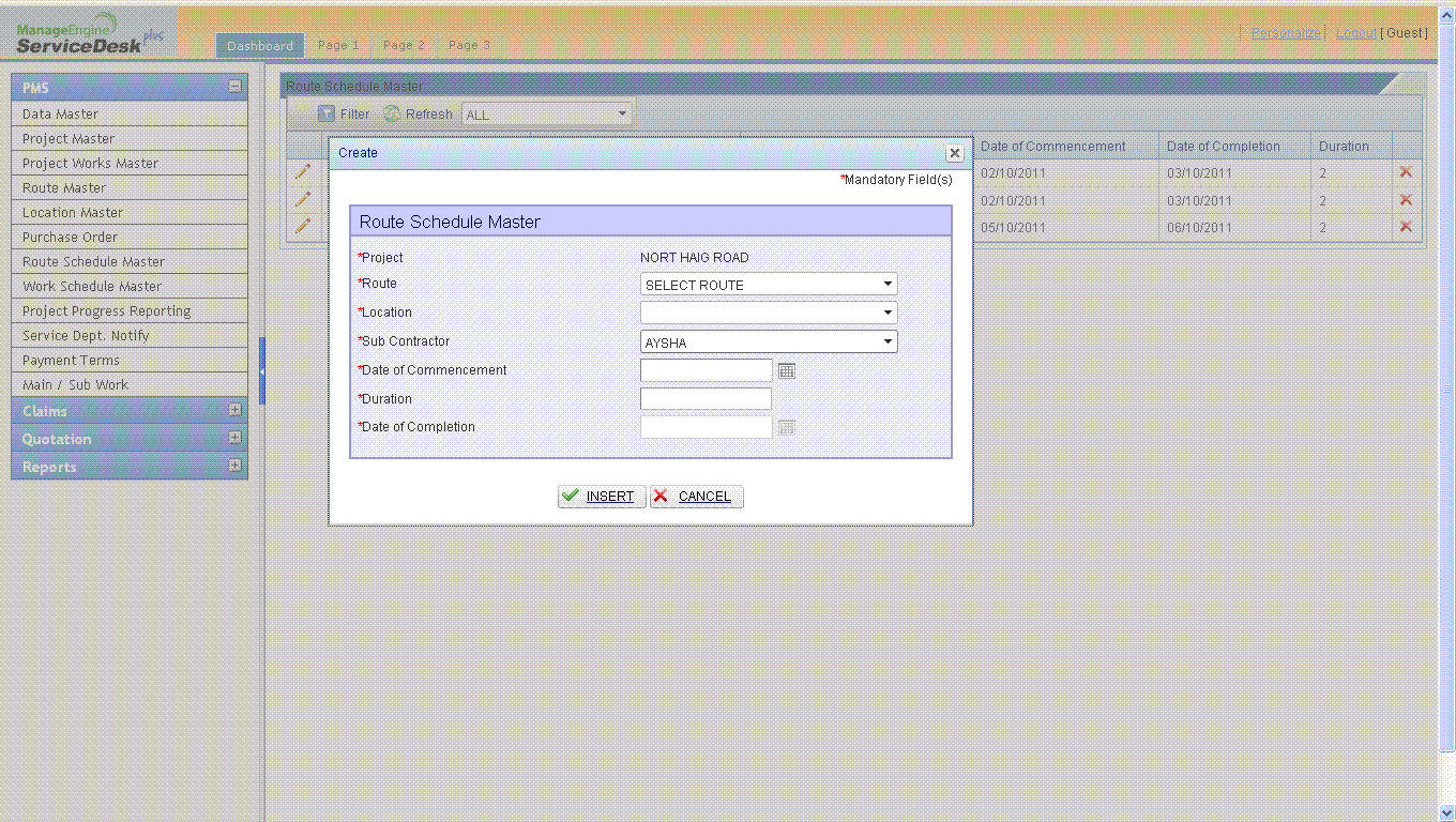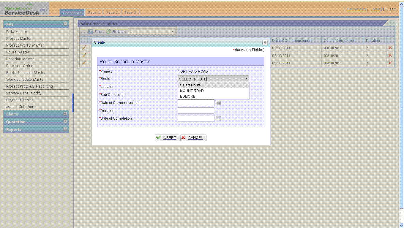 protected void RadComboBox_Route_SelectedIndexChanged(object sender, RadComboBoxSelectedIndexChangedEventArgs e) { RadComboBox comboroute = (RadComboBox)sender; GridEditableItem editedItem = comboroute.NamingContainer as GridEditableItem; RadComboBox RadComboBox_Route = editedItem.FindControl("RadComboBox_Route") as RadComboBox; RadComboBox RadComboBox_Location = editedItem.FindControl("RadComboBox_Location") as RadComboBox; RadComboBox_Location.Text = ""; RadComboBox_Location.SelectedValue = ""; RadComboBox_Location.ClearSelection(); RadComboBox_Location.Items.Clear(); string LocationWise = ("select distinct locationcode, locationplan from dslocationmaster where status <> 'del' and routecode = '" + RadComboBox_Route.SelectedValue + "' "); RadComboBox_Location.DataSource = oDBClientADO.GetDataTable(LocationWise); RadComboBox_Location.DataValueField = "locationcode"; RadComboBox_Location.DataTextField = "locationplan"; RadComboBox_Location.DataBind(); RadComboBox_Location.Items.Insert(0, new RadComboBoxItem("Select Location", "-1")); using (var db = new DoskContractServicesDataContext(Globals.strCon)) { var datecomm = (from a in db.dsroutemasters where a.routecode == RadComboBox_Route.SelectedValue select new { a.dtcommencement, a.dtcompletion }).ToList(); Dtcomm = Convert.ToDateTime(datecomm[0].dtcommencement.ToString()); Dtcomplete = Convert.ToDateTime(datecomm[0].dtcompletion.ToString()); } RadGrid1.Rebind(); }<EditFormSettings CaptionFormatString="Create" EditFormType="Template" PopUpSettings-Width="600"