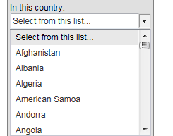 <telerik:RadComboBox ID="SearchCountry" MarkFirstMatch="True" TabIndex="5" style="z-index: 9000;" Width="200px" EnableEmbeddedSkins="true" Skin="Sitefinity" runat="server" Height="150px" OnClientSelectedIndexChanging="aLoadSearchStateProv">The code used to populate the combo box is: