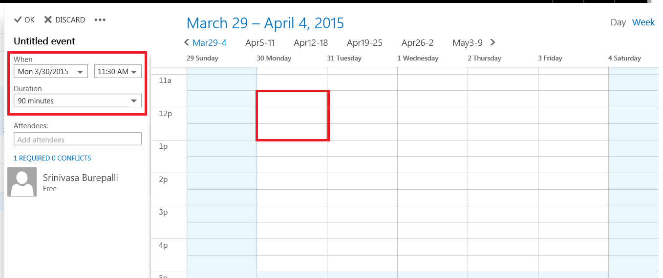 You can see the selected region in the day view of my