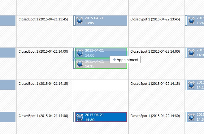 One other thing is, when I drag one or more appointments over, if the dragged appointments is over an appointment or a specialslot during the drag'n drop operation, I would like to change the border color of the overlapped appointments/specialslots...