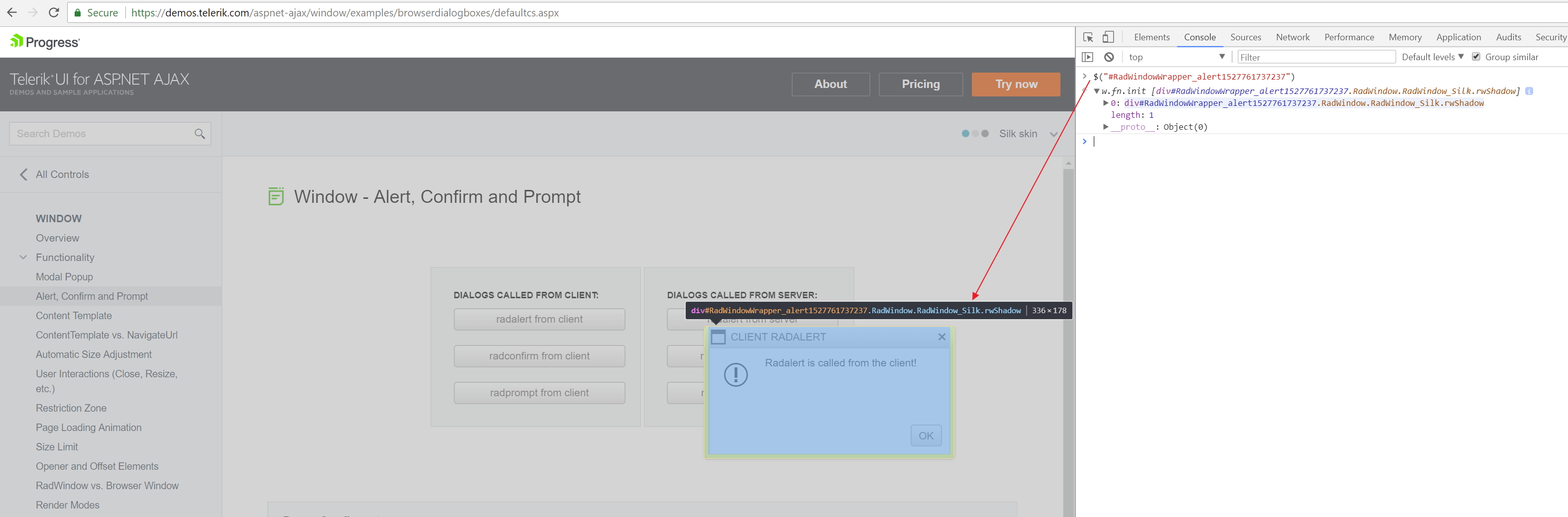One scenario is that I show a radalert dialog or a radconfirm dialog frequently when the user cancels on a page. How do I use javascript to simulate the user clicking a Close button in the radalert/radconfirm dialog? The window has no "name" that I can find since I don't define it directly.