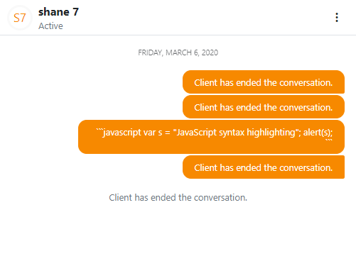 I want to send canned message telling agent that client has ended the conversation whenever client leave the channel— "Client has ended the conversation". Please see attachment below. I currently have a function where client will send a message when s/he leave the channel but I want to send a canned message. I don't know what to use. Will you help me how it is done.