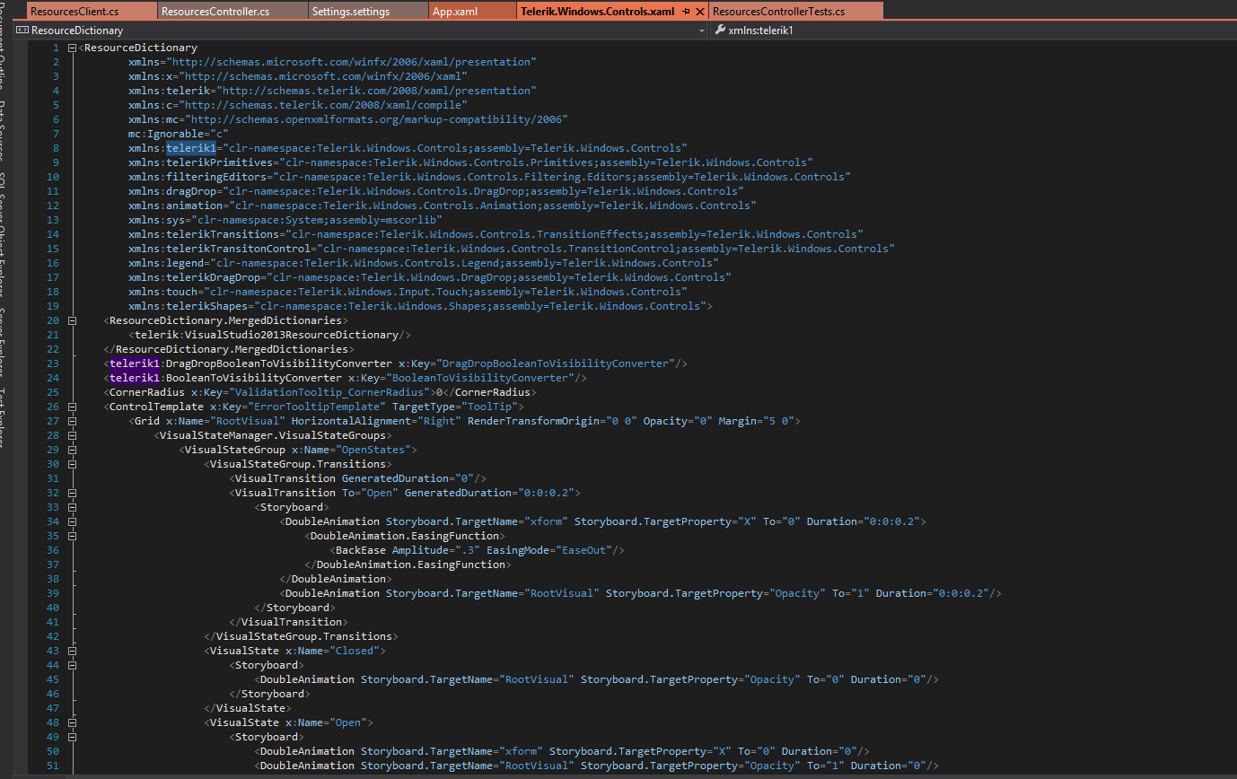 Additional information: 'Office2013ResourceKeyTypeConverter' is unable to convert 'Telerik.Windows.Controls.Office2013ResourceKey' to 'System.Windows.Markup.MarkupExtension'.