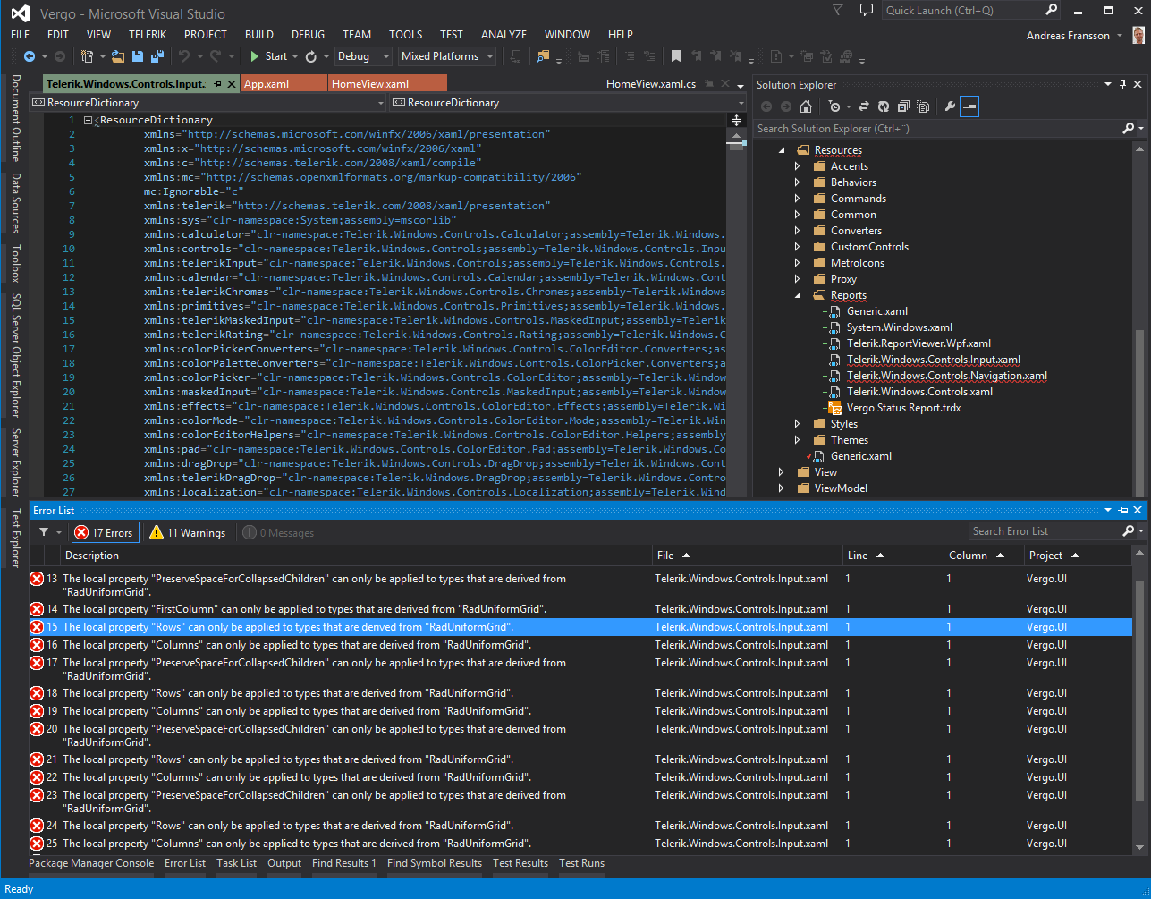I have a trouble Saving a resource dictionary which uses Telerik.Windows.Controls assembly. Telerik.Windows.Controls.