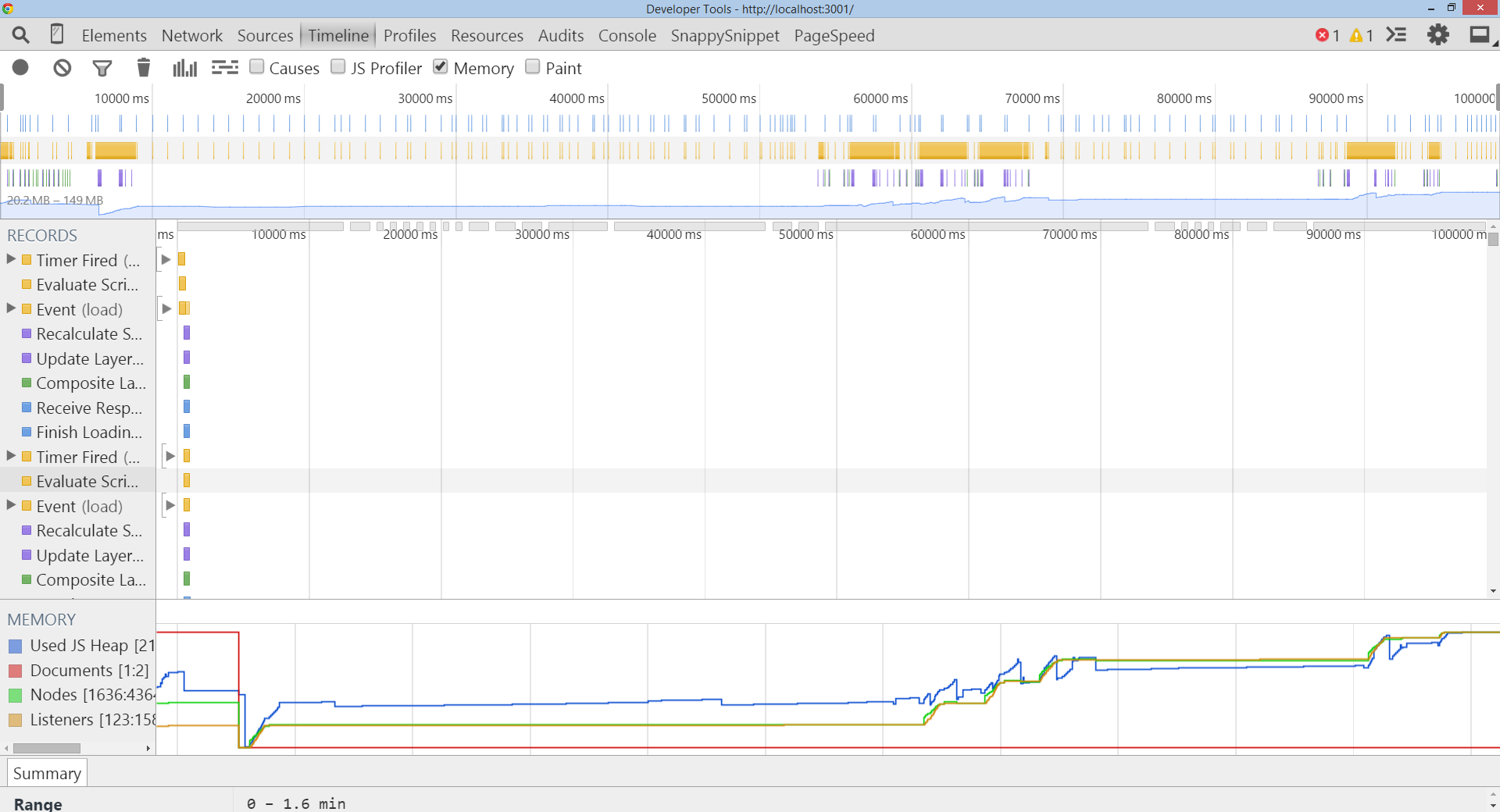 I noticed the javascript memory of the app starts at 220M and rising constantly when trying to filter/sort/etc'.