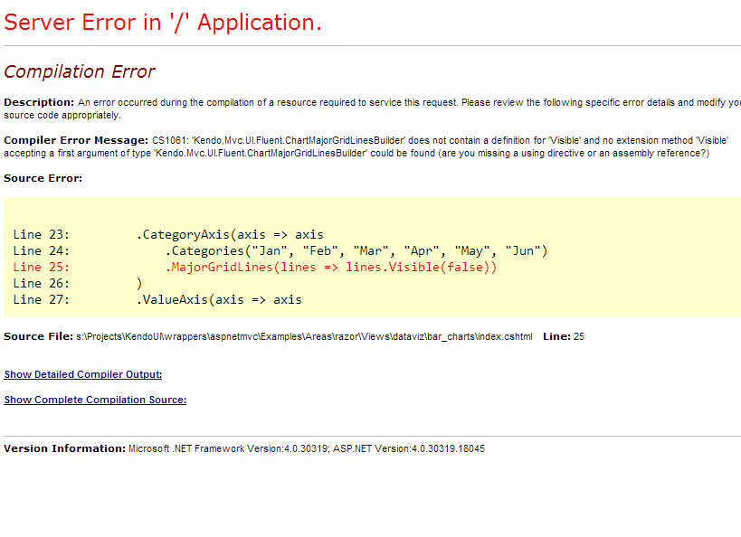 Getting a YSOD on any chart with a MajorGridLines(lines => lines.Visible(false)) in it, running the supplied demo app causes issue also, all other dataviz control work fine.