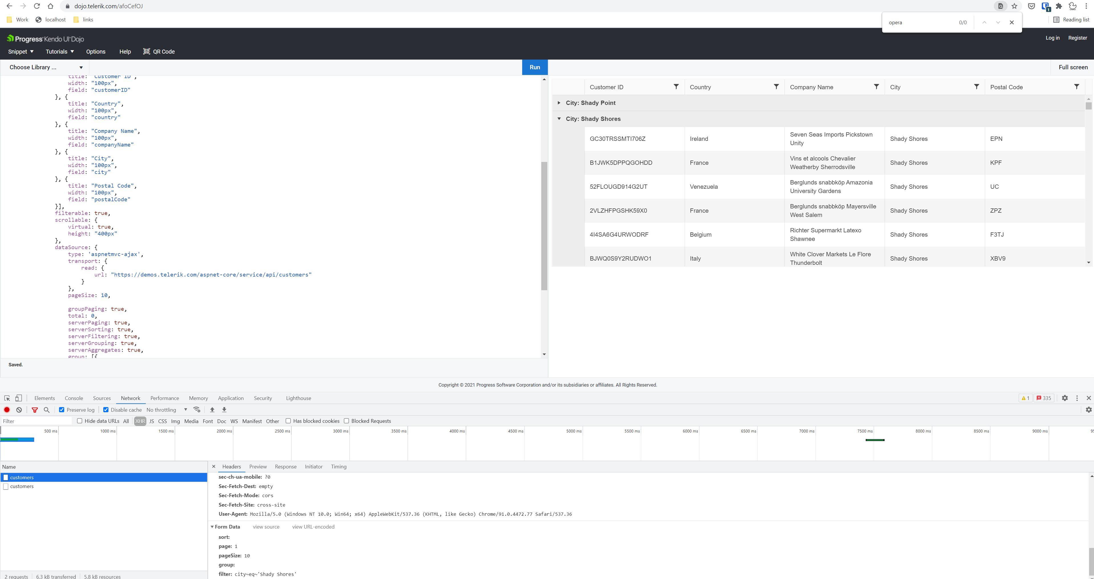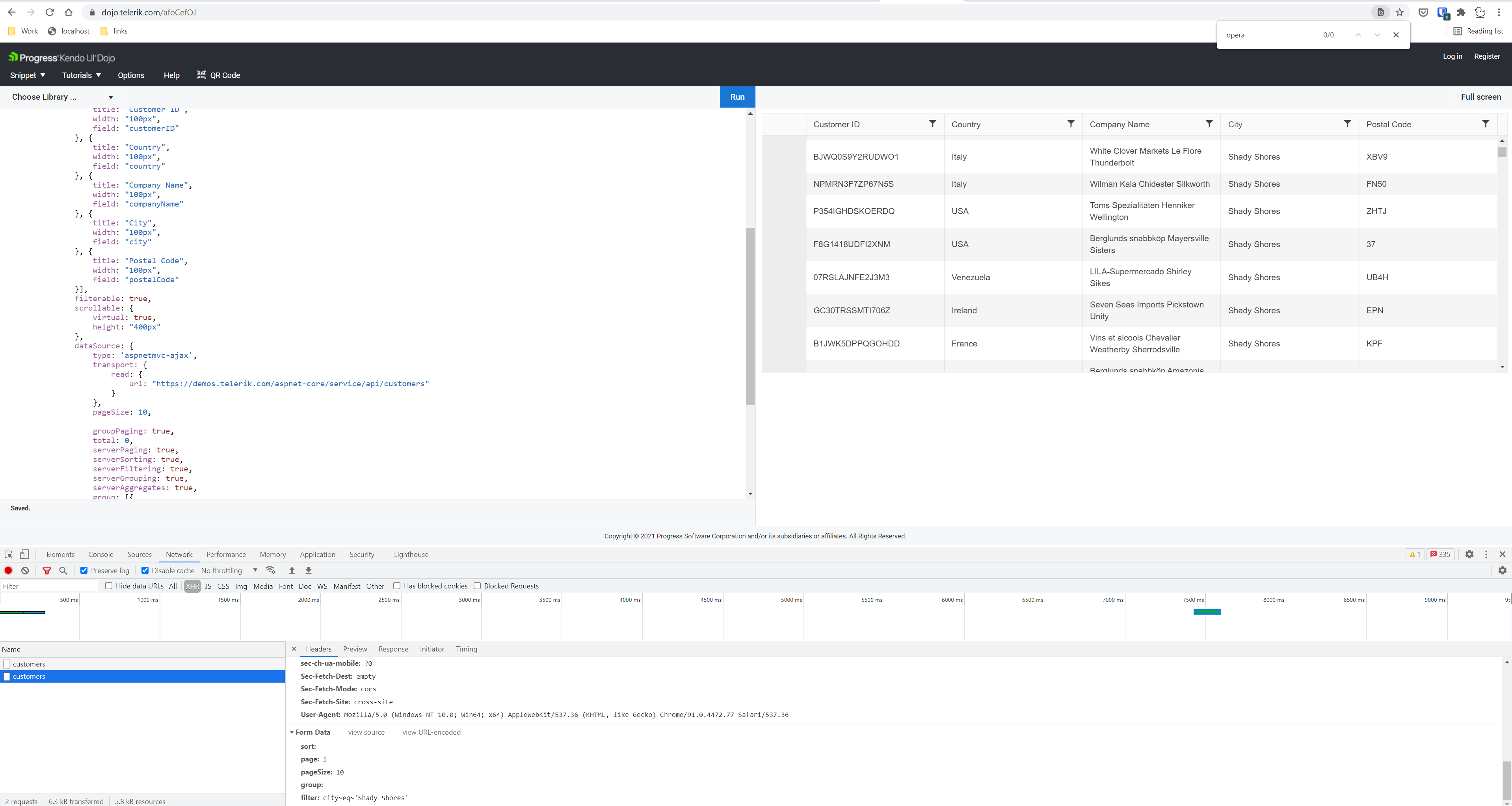 https://demos.telerik.com/kendo-ui/grid/server-grouppaging-virtualization and click to Edit in Dojo. It opens https://dojo.telerik.com/afoCefOJ