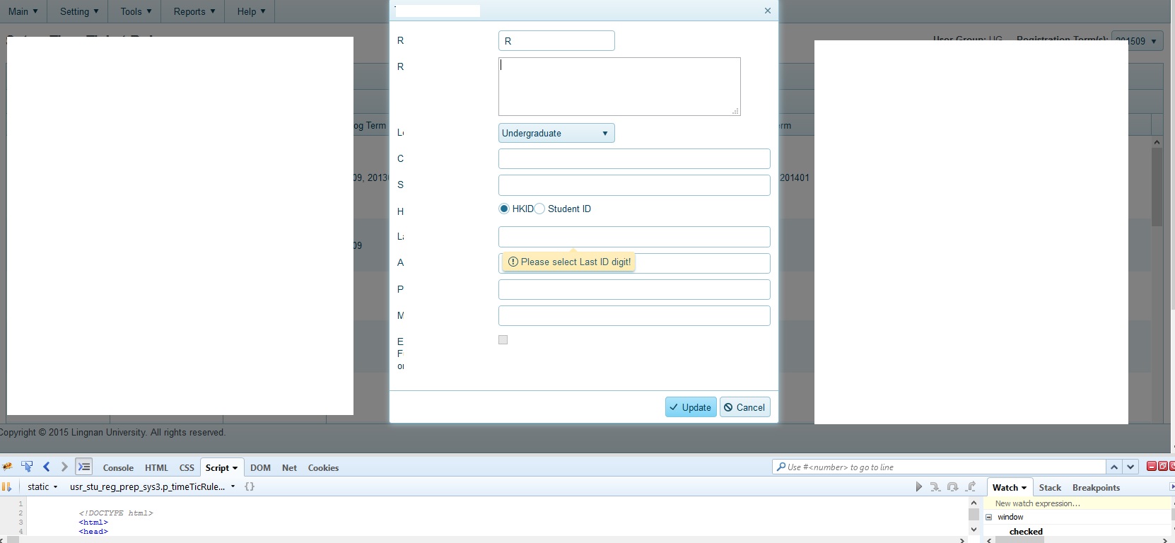 So, I add an alter statement to check whether [data-for=" + name + "],[data-val-msg-for=" + name + "],[data-valmsg-for=" + name + "] is existed. However, it seems that the program cannot find those fields. It always executes alert("T") script.