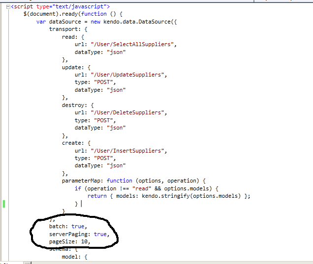 Hey.. I wanna ask about serverPaging. I use it to do server side paging on my grid. I've set the pageSize to 10 and serverPaging to true in datasource object. I've also set pageable to true in my grid. But when i click the page (below the grid), it always select all the data and display all of them..