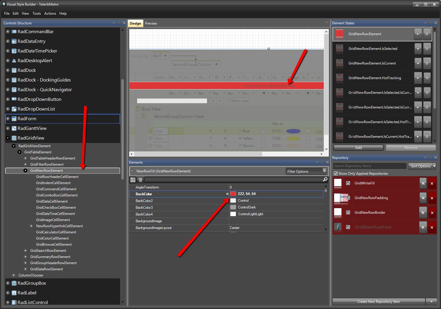 I am using Themes for my application. I would like to color the the Add New Row Back Color style. I am wondering what the best way to do this is.
