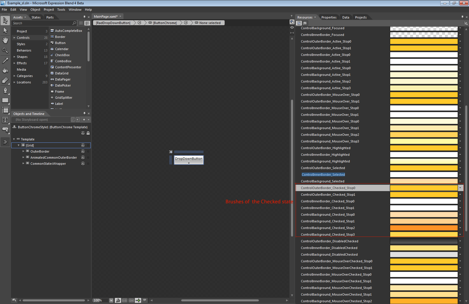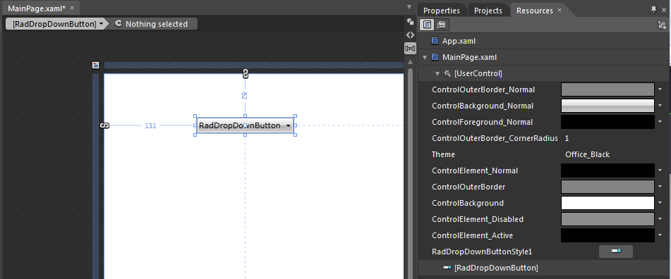 When you edit the control template of the RadDropDownButton you will see the control ButtonChrome. This control holds all visual states for the RadDropDownButton control. Please find the following attached files: