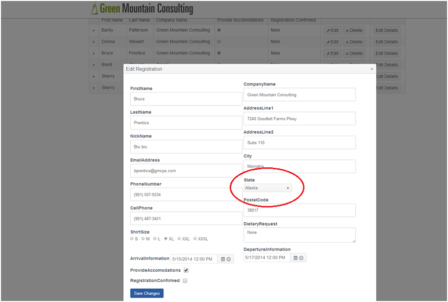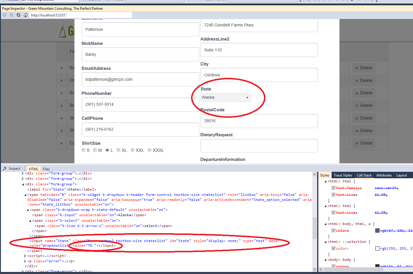 I have a popup window to be used for editing detailed information of a row in a grid. The popup window's content is from a partial view. In this popup window I have a dropdownlist for states. This custom popup edit window is opened when a custom command button is clicked. I call an action on the controller to pull the data to populate the custom popup, I put that data in a model and I have the custom popup using the model. Everything works fine, except the dropdownlist's selected value is not set. It just shows the first item in the list. I've tried setting the .Value option to the model value - .Value(Model.state) - doesn't work. I've tried using the DataBound event to set the value there to the model.State, but I get errors. If I try to declare the event function in the popup partial view, it doesn't get recognized and I get the not declared error. If I try to declare it in the calling view, it doesn't recognize the model (since it's in the partial view). What am I doing wrong? Any help is very much appreciated!