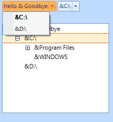 this.radBreadCrumb1.DefaultTreeView = this.radTreeView1;this.radTreeView1.NodeFormatting += radTreeView1_NodeFormatting;this.radTreeView1.SelectedNodeChanged += radTreeView1_SelectedNodeChanged;private void radTreeView1_SelectedNodeChanged(object sender, Telerik.WinControls.UI.RadTreeViewEventArgs e){ foreach (RadSplitButtonElement item in this.radBreadCrumb1.BreadCrumbElement.Items) { item.ActionButton.TextElement.UseMnemonic = false; foreach (RadMenuItem i in item.Items) { i.Layout.Text.UseMnemonic = false; } } }I hope this information helps. If you need any further assistance please don't hesitate to contact me.