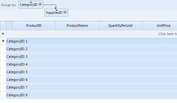 public Form1(){ InitializeComponent(); this.radGridView1.TableElement.CellElementProvider = new CustomCellElementProvider(this.radGridView1.TableElement); this.radGridView1.CellClick += radGridView1_CellClick;}private void radGridView1_CellClick(object sender, GridViewCellEventArgs e){ GridViewGroupRowInfo groupRow = e.Row as GridViewGroupRowInfo; if (groupRow.GroupLevel == 0) { e.Row.IsExpanded = !e.Row.IsExpanded; }}public class CustomCellElementProvider : CellElementProvider{ GridTableElement rowView; public CustomCellElementProvider(GridTableElement rowView) : base(rowView) { this.rowView = rowView; } public override SizeF GetElementSize(GridViewColumn item) { float width = item.Width; if (item is GridViewRowHeaderColumn) { width = rowView.RowHeaderColumnWidth; } else if (item is GridViewIndentColumn) { GridViewIndentColumn indentColumn = item as GridViewIndentColumn; if (indentColumn.IndentLevel == 0) { width = 1; } else if (indentColumn.IndentLevel == 20) { width = 30; } else { width = rowView.GroupIndent; } } if (width < 0) { width = DefaultElementSize.Width; } if (item is GridViewGroupColumn) { ColumnGroupRowLayout layout = rowView.ViewElement.RowLayout as ColumnGroupRowLayout; if (layout != null) { ColumnGroupsCellArrangeInfo arrangeInfo = layout.GetColumnData(item); if (arrangeInfo != null) { width = arrangeInfo.Bounds.Width; } } } return new SizeF(width, 0); }}I hope this information helps. If you have any additional questions, please let me know.