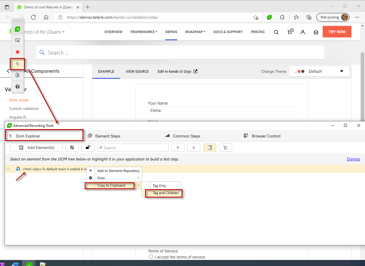 If there is no page to share along, then collect the DOM tree as follows - see the image for reference on how to copy the DOM: