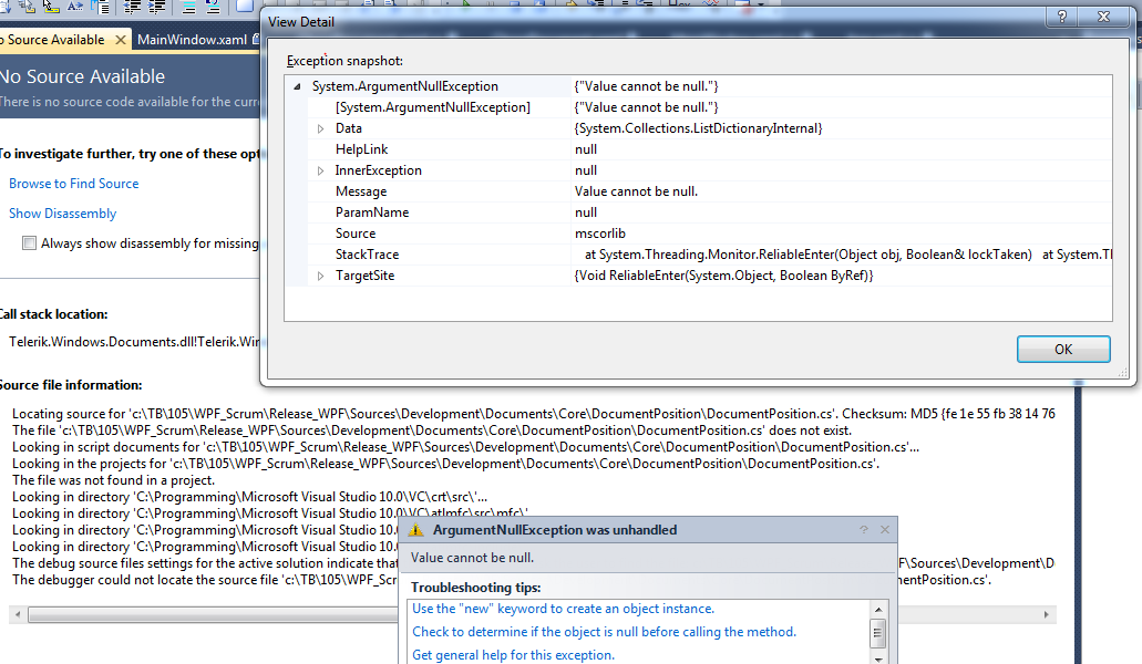 Although this works, and I see my document show up correctly, about a half second later the application blows up with the attached error. I included this as an image to show call stack and other info. Any ideas anyone?