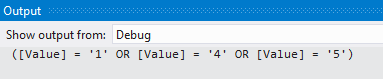Note that all the items in the above list have single quotes around them. But the resulting FilterDescriptors.Expression looks like this:
