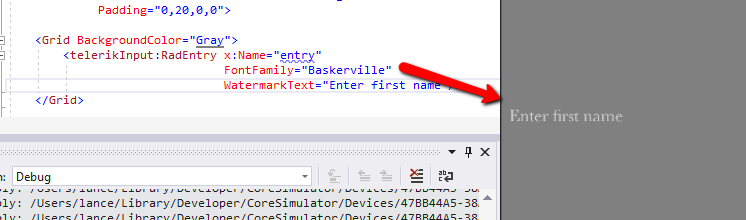 <telerikInput:RadEntry x:Name="entry" FontFamily=".SFUIText" WatermarkText="Enter first name"/>or you could define resources like this: