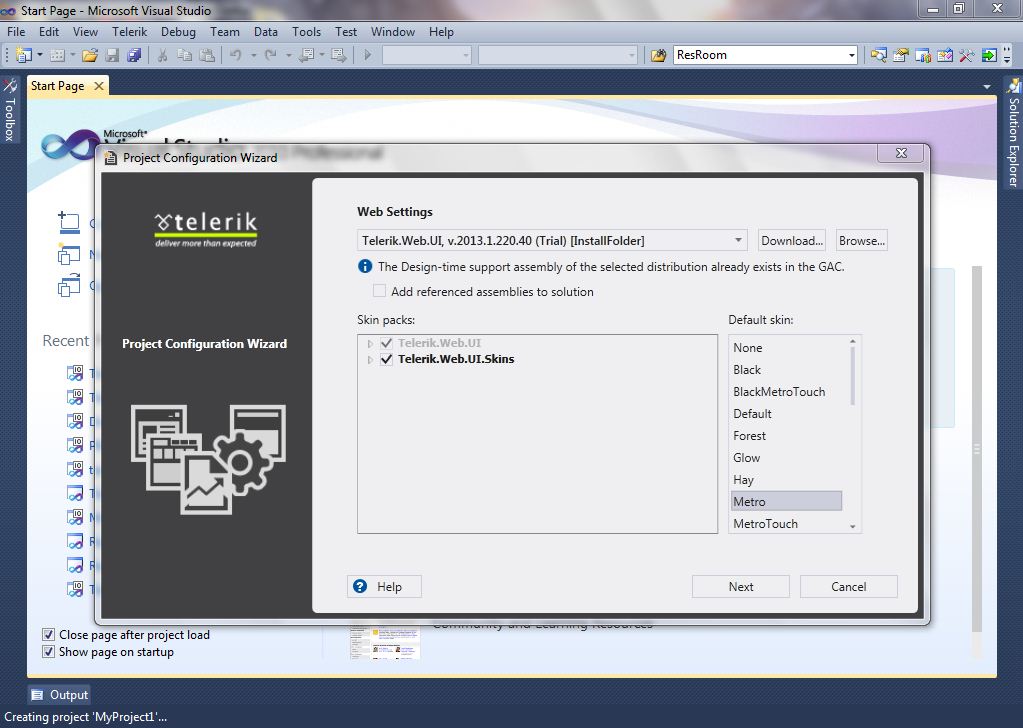 Yes, it is possible to set a global skin which is applicable to all the RadControls under your project. To set a global skin, you need to configure the web settings at the time of creating your new website as follows.