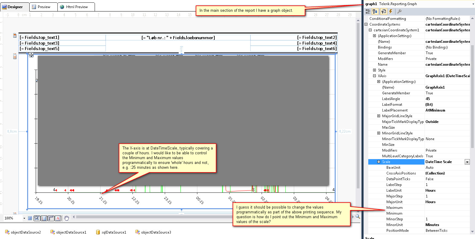 I'm using the ReportProcessor to print the report programmatically and would like to set the values before I print the report. My report contains a singe graph object (graph1). The name of the coordinate system is the standard (cartesianCoordinateSystem1)