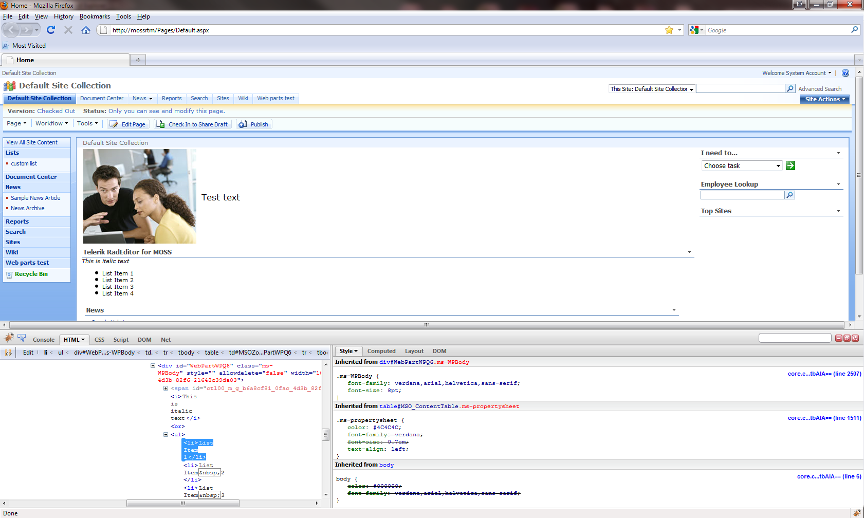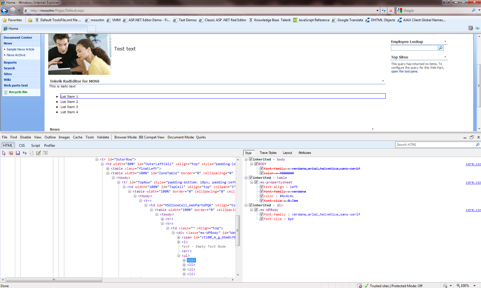 I have another query. In the Radeditor, Bullet and Italics is not working in publishing mode. But when I am in edit mode, both are working.