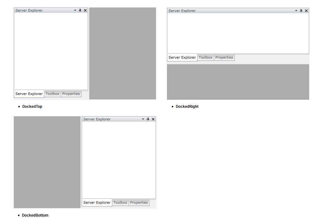 How can I specify if the Server Explorer is DockedTop, DockedRight or DockedBottom?