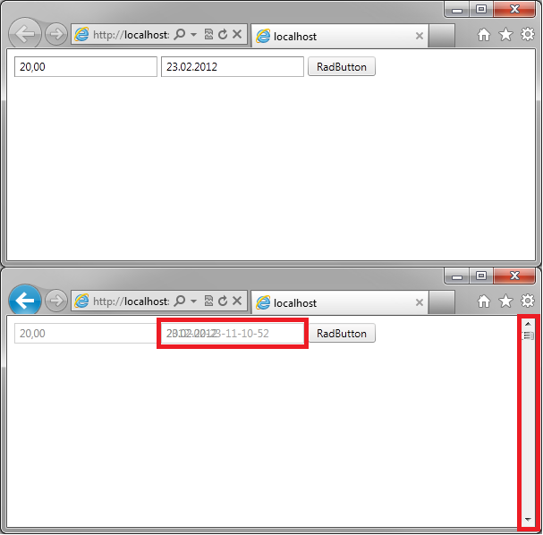 When using IE9 and setting the enabled property of a NumericTextBox to false, a vertical scrollbar appears on the screen.