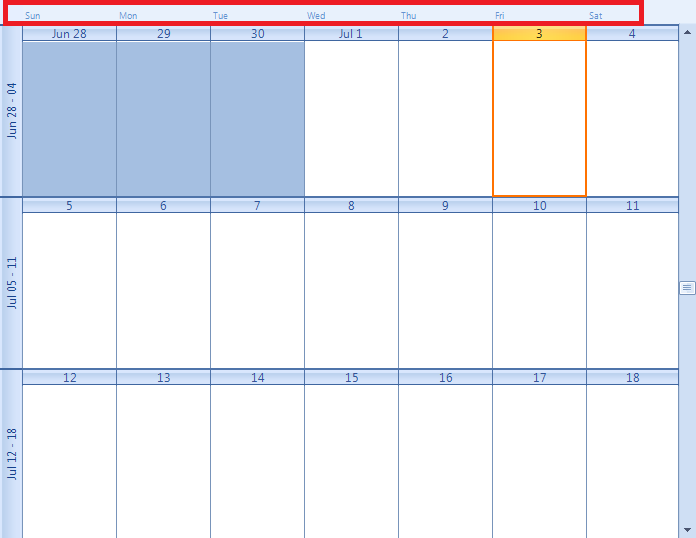 I have set the HeaderFormat property on both the GetMonthView() and the scheduler control, and it does not seem to change. I still see the weekday names fully spelled out, and Wednesday will not fit into the allocated area.