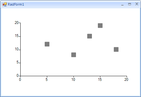ScatterSeries scatterSeries = new ScatterSeries();scatterSeries.Shape = new RoundRectShape(1);scatterSeries.PointSize = new SizeF(15, 15);scatterSeries.DataPoints.Add(new ScatterDataPoint(15, 19));scatterSeries.DataPoints.Add(new ScatterDataPoint(18, 10));scatterSeries.DataPoints.Add(new ScatterDataPoint(13, 15));scatterSeries.DataPoints.Add(new ScatterDataPoint(10, 8));scatterSeries.DataPoints.Add(new ScatterDataPoint(5, 12));this.radChartView1.Series.Add(scatterSeries);I hope this information helps.