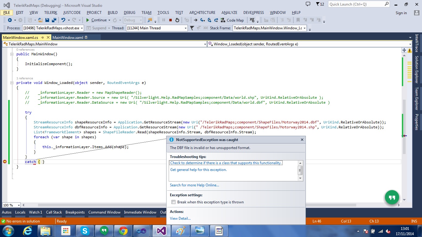 Telerik example link which I'm referring is here http://www.telerik.com/help/wpf/radmap-features-shapefiles-support.html