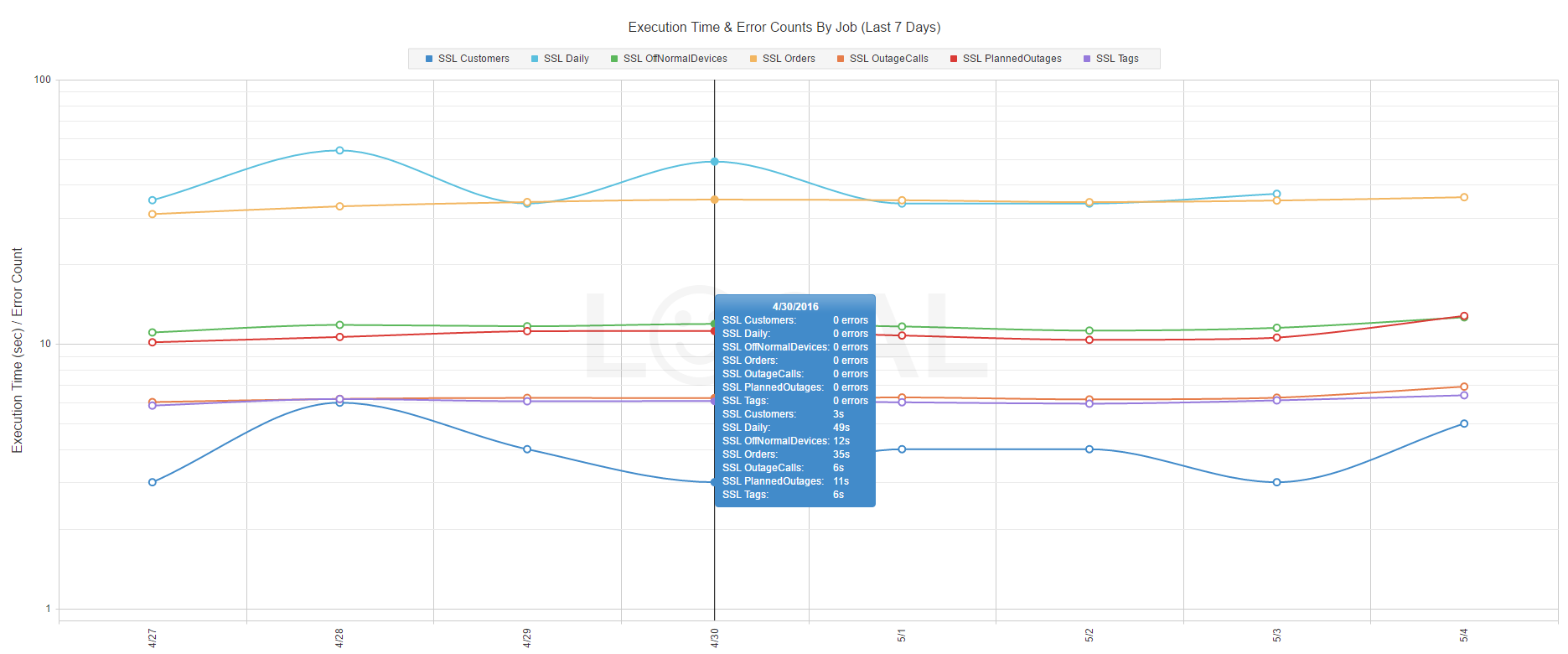 .Title("Execution Time & Error Counts By Job (Last 7 Days)")