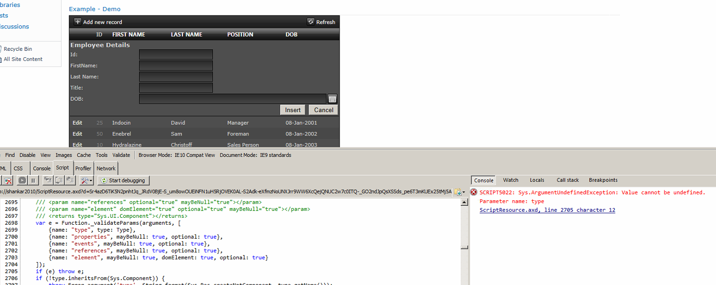 I've done how you said and I have a java script error like in the picture attached. I can send you a test project but I don't know how. I try it on 2 development server and a production server and I got the same error everywhere !