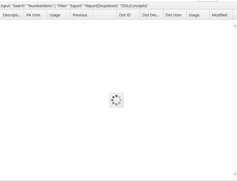 toolbar: 'Input: "Search" "NumberItems" | "Filter" "Export" "Report(Dropdown)" "DDL(Concepts)"',