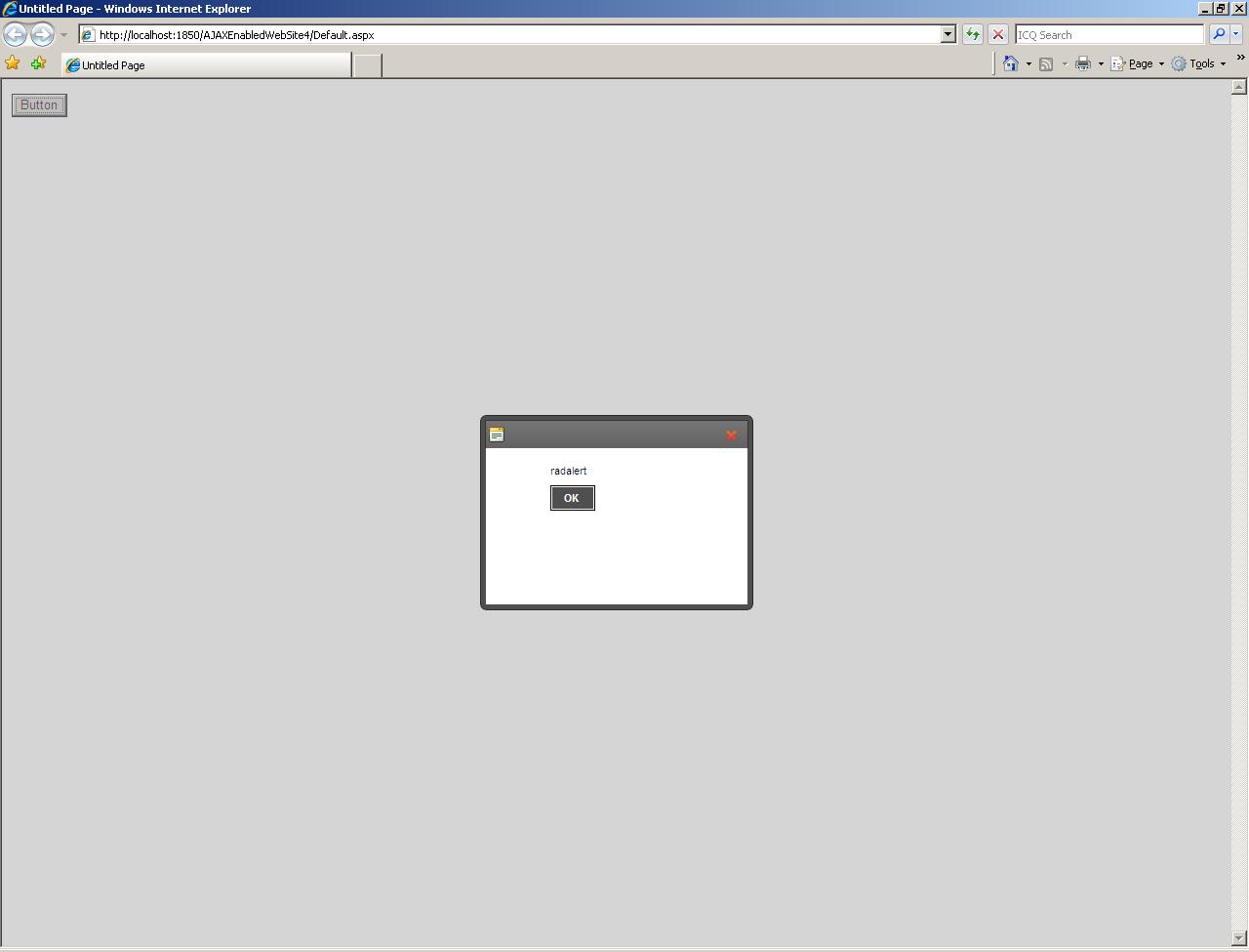 Config - VS 2008 Express, Prometheus 3Q 2007. RadWindowManager control sits on a master page, RadAlert is invoked from a content page.