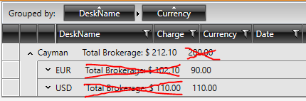 Where it gets more interesting is if you group by Currency and another column. The desired behaviour is to show ONLY the exchanged sum in the header down in each group, and child group etc., until the Currency grouping, where you ONLY display the currency sum, as demonstrated in GroupByDeskThenCurrency.PNG