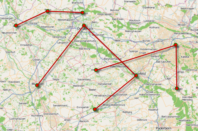 I try to achive the following: I want to display tours on a map. A tour consists of multiple stations which are locations. I do not want to draw a concrete route, but some kind of a sketch route. That means that all the stations are connected with straight lines. So far, this is no problem, I can use the MapPolyline for this. I want the stations itself to be displayed as filled circles. I want to be able to visualize multiple tours in the same map. (See attached picture)