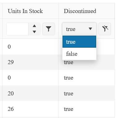 We also need a DropDownList for a boolean column in the filter as described here:
