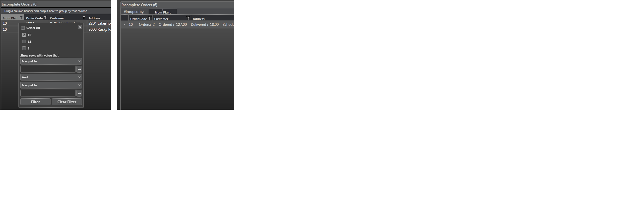 I have included a picture of my scenario. There is a column on my grid with the title "From Plant" that is filterable and groupable. Before grouping, I placed a filter on the column. After applying the filter, I grouped the column. Problem: I don't see the filter icon after grouping "From Plant", nor can I access the filter popup.